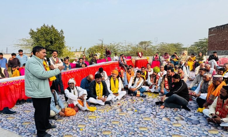 आगरा। केंद्रीय सेवाओं में जाट आरक्षण को बहाल किए जाने की मांग को लेकर आज फतेहपुर सीकरी के अरहेरा गांव में अखिल भारतीय जाट महासभा के जन जागृति अभियान के तहत सभा का आयोजन किया गया सभा में आगरा भरतपुर मथुरा एवं हाथरस से अनेक प्रमुख गण मान्य लोगों ने भाग लेकर केंद्र सरकार से एक स्वर में अपील करते हुए मांग की कि 2015, 2017, 2019 और 2022 में प्रधानमंत्री श्री नरेंद्र मोदी जी एवं गृहमंत्री शाह जी जाट समाज से आरक्षण बहाल किए जाने के अपने वायदे को निभाएं। कार्यक्रम की शुरुआत महाराजा सूरजमल के चित्र पर दीप प्रज्वलित व मल्लारपुर कर मुख्य अतिथि एवं प्रदेश अध्यक्ष श्री प्रताप चौधरी पूर्व विधायक,मुख्य वक्ता श्री नेम सिंह फौजदार भरतपुर, जिला अध्यक्ष कप्तान सिंह चाहर, महामंत्री वीरेंद्र सिंह छोंकर, मथुरा के जिला अध्यक्ष राजेश चौधरी, महानगर अध्यक्ष गजेंद्र सिंह नरवार, युवा जिला अध्यक्ष सुरेंद्र चौधरी व महानगर अध्यक्ष लखन चौधरी ने संयुक्त रूप से की। कार्यक्रम की अध्यक्षता अखिल भारतीय जाट महासभा के जिला अध्यक्ष कप्तान सिंह चाहर ने की संचालन वीरेंद्र सिंह छोंकर ने किया।