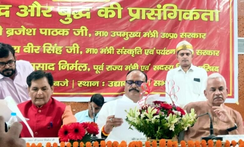लखनऊ। उद्यान भवन सभागार में डॉ आंबेडकर महासभा ट्रस्ट के तत्वावधान में विश्व युद्ध के खतरे और बुद्ध की प्रासंगिकता पर संगोष्ठी का आयोजन किया गया। इसमें उपमुख्यमंत्री बृजेश पाठक,सदस्य विधान परिषद लाल जी निर्मल,राज्य सूचना आयुक्त डॉ दिलीप अग्निहोत्री सहित अनेक लोगों ने विचार व्यक्त किया। संयोजक अमरनाथ प्रजापति थे। इसके अलावा अनेक शिक्षाविद पत्रकार सहित बड़ी संख्या में लोग सहभागी हुए। वक्ताओं ने गौतम बुद्ध के उपदेशों का उल्लेख किया। इन्हें सम्पूर्ण मानवता के लिए कल्याणकारी बताया गया। मध्यपूर्व में चल रहे युद्ध पर चिंता व्यक्त की गई। ऐसे में बुद्ध के विचार पूरी तरह प्रासंगिक हैं। बुद्ध ने मन,वाणी और कर्म से सभी जीवों के प्रति करुणा का संदेश दिया। यह पंचशील का प्रथम सिद्धांत है। अहिंसा परमो धर्म: के आदर्श से युद्ध की स्थिति से बचा जा सकता है। वैश्विक समस्याओं का समाधान केवल संवाद से ही होना चाहिए। भारत के सनातन चिंतन से ही विश्व शांति संभव है। यह एक मात्र ऐसा चिंतन है जिसमें वसुधा को कुटुंब माना गया। सभी के सुख की कामना की गई। उदार चरित्र का संदेश दिया गया। करुणा का विचार केवल मानव तक सीमित नहीं रखा गया। सभी जीव जंतु और प्रकृति के प्रति भी ऐसा ही भाव होना चाहिए। दुनिया के सभी शासक इस विचार को समझें। आत्मनियंत्रण पर अमल करें,तो युद्ध नहीं होंगे।