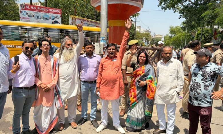 परशुराम चौक पर जन सहयोग संगठन का जोरदार प्रदर्शन, कमिश्नर से की सख्त कार्रवाई की मांग