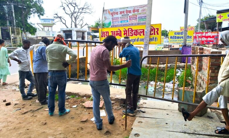 खंदौली में खबर के बाद जागा नेशनल हाइवे, नाले पर लगाई गयीं रेलिंग, नाले में गिरी थी बच्ची