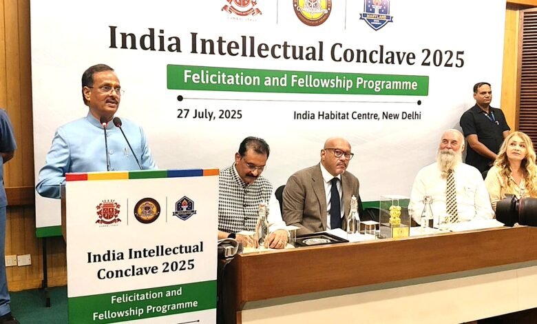 नई दिल्ली। राज्य सभा के सांसद डॉ, दिनेश शर्मा पूर्व उप मुख्यमंत्री ने इंडिया हैबिटेट सेंटर, नई दिल्ली में आयोजित एक अंतरराष्ट्रीय बौद्धिक सम्मेलन में बोलते हुए कहा कि भारत प्राचीन काल से ज्ञान और बौद्धिक सम्पदा में विश्च में सिरमौर रहा है। हमारी संस्कृति ने विश्व को नूतन दिशा दी है। भारतीयों में फूट डालकर आक्रांताओं ने हमें अतीत में गुलाम बना लिया था। परंतु विविधता में एकता के सूत्र में बंधने और प्रधानमंत्री नरेंद्र मोदी जी के नेतृत्व में हम विश्व की ग्यारहवीं से ऊपर उठ कर चौथी वित्तीय शक्ति बन गए है। हम सब को अपने देश गौरव बोध को आगे रखकर समाज को नई दिशा देनी है।।