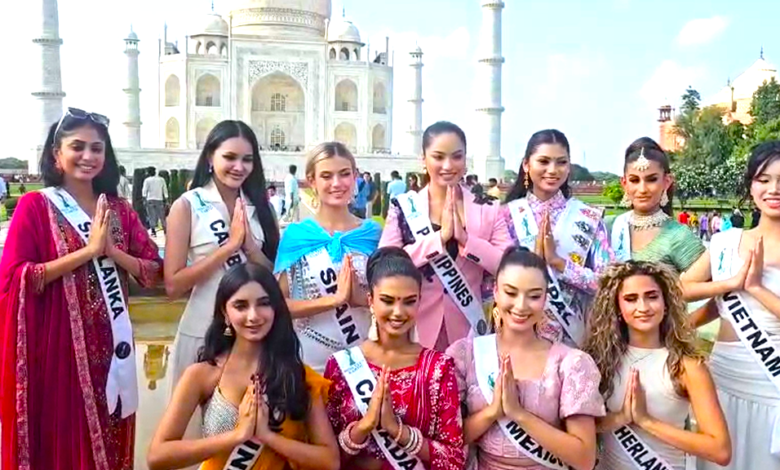 आगरा:–गुरुवार शाम को मिस टीन अर्थ 2025 की 11 देशों की फाइनलिस्ट जब दुनिया के अजूबों में शुमार ताजमहल की दीदार को पहुंचीं तो भीड़ देखते ही बन रही थी। स्पेन, मेक्सिको, फिलीपींस, भारत, नेपाल, नीदरलैंड, वियतनाम, कनाडा, कंबोडिया, क्यूबा और श्रीलंका से आईं सुंदरियों ने जब सफेद संगमरमर के इस प्रेम प्रतीक को देखा तो सबके मुंह से एक ही आवाज आई- अमेजिंग… वंडरफुल… वाह ताज