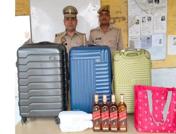 की गई तो किसी ने उसके मालिक के संबंध में नहीं बताया। टीम ने तीनों ट्राली बैग एवं दो हैंड बैग को कब्जे में लेकर उनकी तलाशी ली तो उसमें अंग्रेजी ब्रांडेड शराब की जानी वाकर और रेड लेवल महंगी अंग्रेजी शराब की कुल 54 बोतलें बरामद हुई। जिसे जब्त कर आबकारी अधिनियम में अज्ञात व्यक्ति के विरुद्ध मुकदमा दर्ज कर शराब सीज किया गया। प्रभारी निरीक्षक ने बताया कि दिल्ली माकां शराब की कीमत लगभग एक लाख के आसपास है। जिसे शराब तस्कर