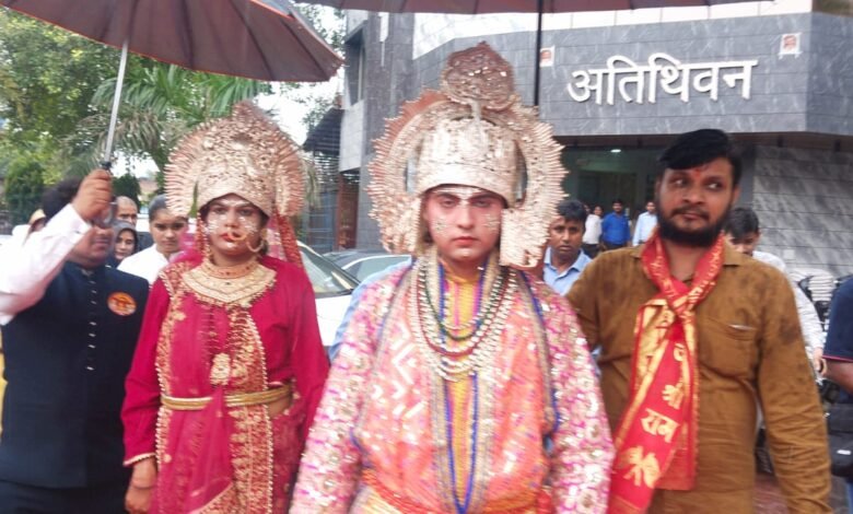 रेड कार्पेट पर मुंबई के कलाकारों ने प्रभु राम, माता सिया और अन्य स्वरूपों की आरती करते हुए मुख्य मंच तक अगवानी की। जैसे ही माता जानकी के साथ प्रभु राम के दिव्य दर्शन मिथिलावासियों को हुए, जयकारों के साथ छायाचित्र लेने की होड़ मच गई।