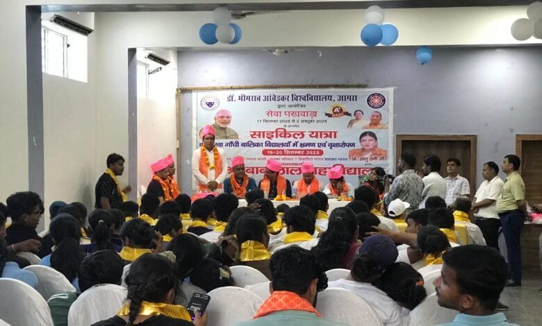 गोवर्धन। डॉ भीमराव अंबेडकर विश्वविद्यालय के अंतर्गत सेवा पखवाड़ा मनाया जा रहा है। जिसमें डॉ मनु प्रताप सिंह के नेतृत्व में एक साइकिल रैली जो कि आगरा से जाजम पट्टी, सौंख, गोवर्धन से मथुरा होकर वापस आगरा पहुंचेगी का आयोजन किया जा रहा है। जिसके अंतर्गत श्री बाबू लाल महाविद्यालय की ओर से रैली का स्वागत गुलमोहर होटल मथुरा गोवर्धन मार्ग में किया गया। जिसमें सभी प्रतिभागियों एवं आगुंतकों का दुपट्टा माला एवं स्वाफा पहनाकर स्वागत किया गया तथा पुष्प वर्षा कि गयी।कार्यक्रम को संबोधित करते हुए श्री बाबू लाल महाविद्यालय के प्राचार्य डॉ लीविस कुलश्रेष्ठ ने कहा क़ि इस तरह के आयोजन विद्यार्थियों में एक जोश फूंकने का काम करते हैं। वही साईकिल रैली के कोऑर्डिनेटर डॉ मनु प्रताप सिंह ने श्री बाबू लाल महाविद्यालय परिवार को धन्यवाद ज्ञापित करते हुए कहा कि महाविद्यालय लगातार अपने कार्य के लिए सुव्यवस्थित कार्य कर रहा है जो क़ि सराहनीय है। साइकिल रैली में आगरा से प्रमुख रूप से साथ चल रहे डॉ राजेश लवानिया डॉ प्रीति सिंह,डॉ प्रतिभा रश्मि,डॉ हरवीर सिंह, चौधरी कृपाल सिंह आर्य, चौधरी श्यामवीर सिंह,मानवेंद्र उपाध्याय, सुखपाल सिंह तोमर,रईस खान और दीपक गुप्ता प्रमुख रहे। स्वागत कार्यक्रम में मुख्य रूप से उप्राचार्य डॉ उम्मेद सिंह,डॉ जयप्रकाश सिंह,मोनू चौधरी डॉ शकील अहमद, डॉ अमरचंद छौकर, डॉ विमलेश सिकरवार,डॉ प्रीति वर्मा, मानिकचंद, राहुल अटोरिया, दीपक शर्मा आदि प्रमुख रूप से उपस्थित रहे। कार्यक्रम का संचालन राष्ट्रीय सेवा योजना के कार्यक्रम अधिकारी डॉ धीरज कौशिक द्वारा किया गया।