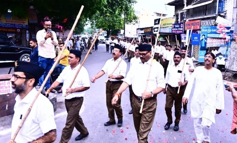 शताब्दी वर्ष के उदघाटन अवसर पर लखनऊ में 72 स्थानों पर स्वयंसेवकों ने निकाला पथ संचलन