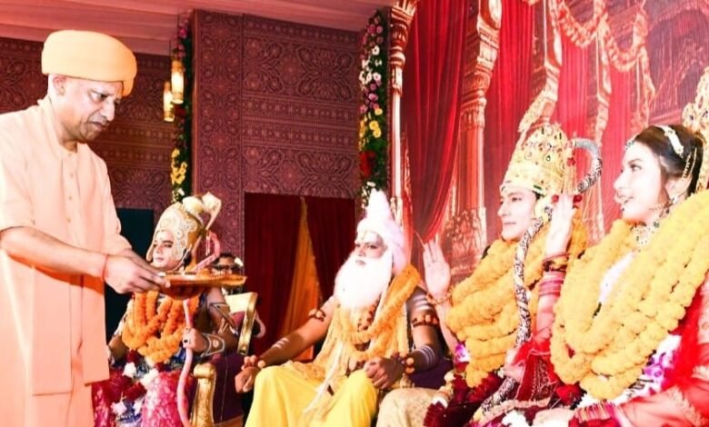 इस दृश्य की कल्पना करना ही अपने आप में सुखद लगता है। अयोध्या में ऐसा ही दृश्य प्रतीकात्मक रूप में दर्शनीय है।