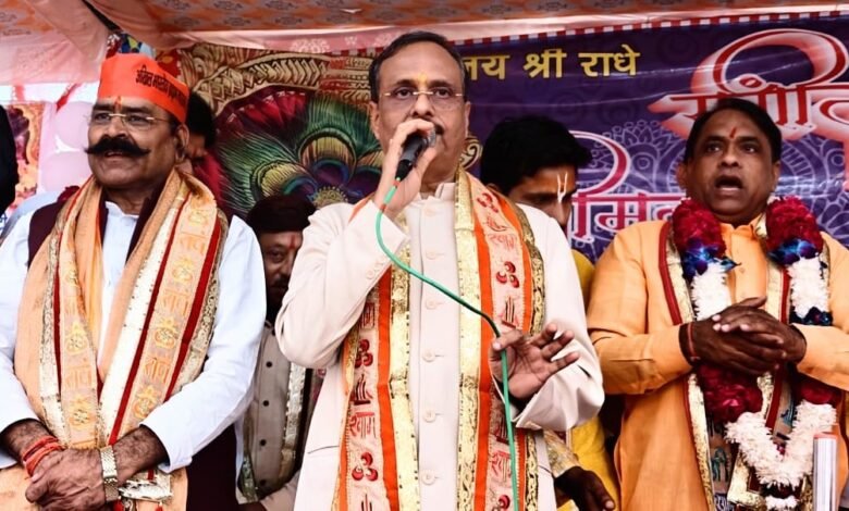भगवान कृष्ण द्वारा कालिया नाग के मान मर्दन का जिक्र करते हुए उन्होंने कहा कि ऐसा करके भगवान ने कालिया नाग के प्रति लोगों के मन में बैठे डर को निकालने का काम किया था। उसके सर पर पैर रखकर इसलिए बाहर आए कि वहां एकत्रित जन समूह के मन से उसका भय दूर हो जाए इसी प्रकार से मुख्यमंत्री योगी जी ने भी माफिया का मार्ग मान मर्दन करके जनता को भय मुक्ति किया है समाज में मौजूद अधर्मी लोगों से भी डरने की जरूरूत नहीं है। सनातन की परम्परा को ऊंचा करने का प्रयास करना चाहिए जिससे जीवन अपने आप बेहतर हो जाएगा।