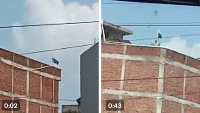 आगरा शमशाबाद रोड पर एक हॉस्पिटल के सामने की बिल्डिंग की छत पर पाकिस्तान का झंडा फहराते हुए तीन व्यक्ति…